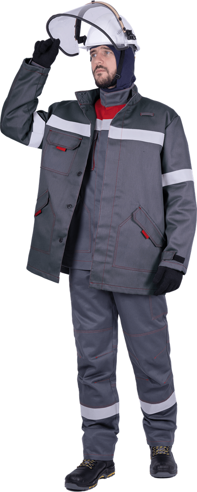 - применяется в комплекте с зимним термостойким костюмом для защиты от электрической дуги, а также в демисезонный период с летними термостойкими костюмами