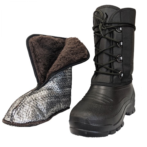 Утеплитель: Сменный вкладыш (чулок) 4-х слойный (фольга (плёнка) металлизированная теплоотражающая (теплосохраняющая), полотно льняное, полушерстяной мех).