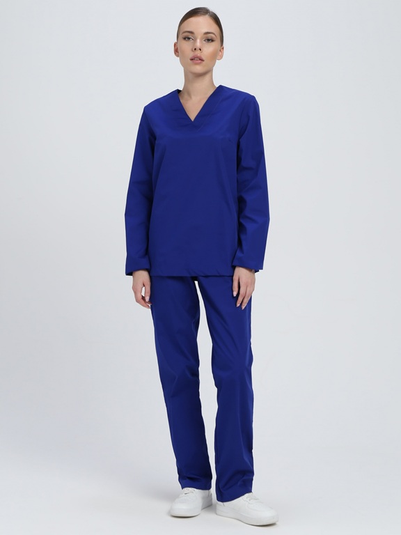 Комплект состоит из блузы и брюк.