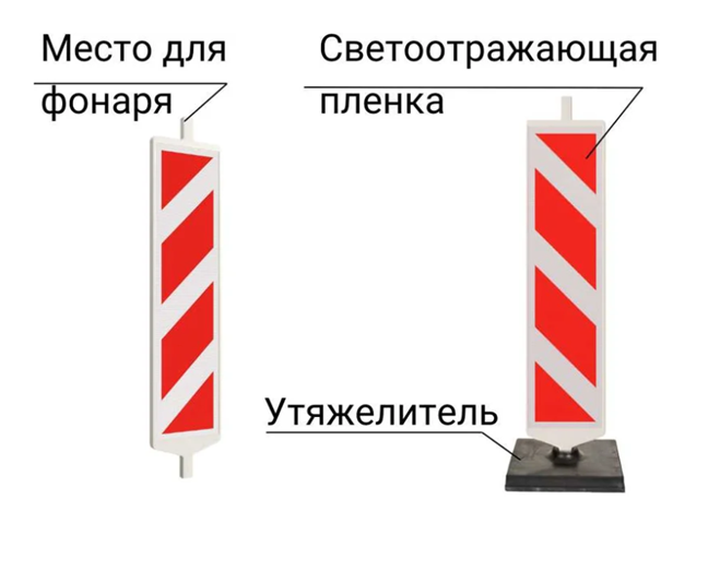 Столбики изготавливают из стали, покрывают порошковой краской. На изделия наносятся оранжевые светоотражающие полосы, которые делают их более заметными в темноте и при плохих погодных условиях.
