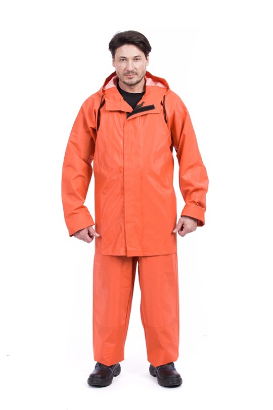 Костюм мужской для защиты от воды тип А, изготовлен из ткани стойкой к действию морской воды, рыбьего жира и нефтепродуктов.