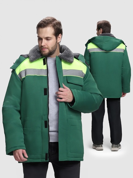 В куртке используются световозвращающие полосы (СОП) обеспечивают безопасность сотрудника в дневное и темное время суток в любом его положении