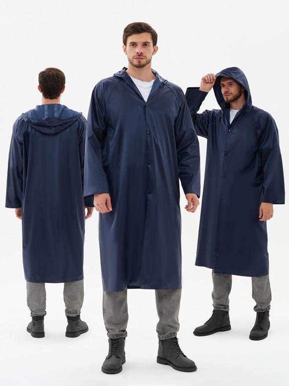 Описание: дождевик имеет втачной капюшон со стойкой,