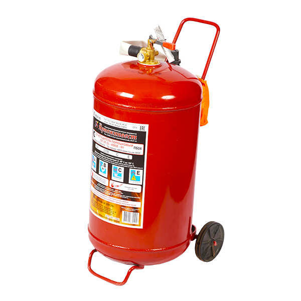 Огнетушитель порошковый ОП-50 представляет собой универсальный передвижной огнетушитель закачанного типа. Масса заряда ОТВ составляет 50 кг. Ранг по модельным очагам пожаров: 6А, 233В, С, Е (до 1000В). Защищает площадь до 500 м². Имеет минимальную длину струи от 6 метров, а продолжительность подачи огнетушащего вещества не менее 20 секунд.