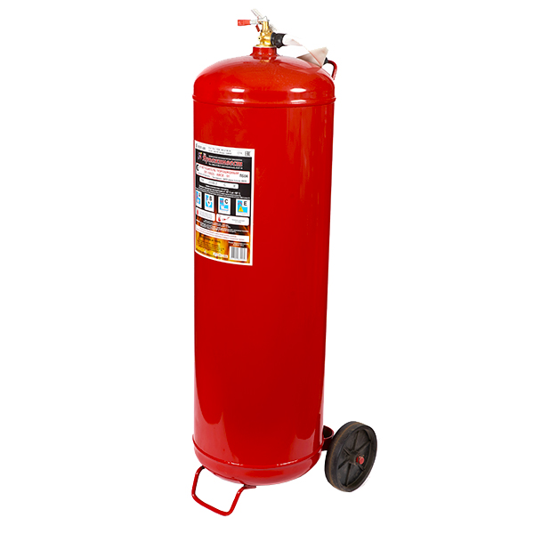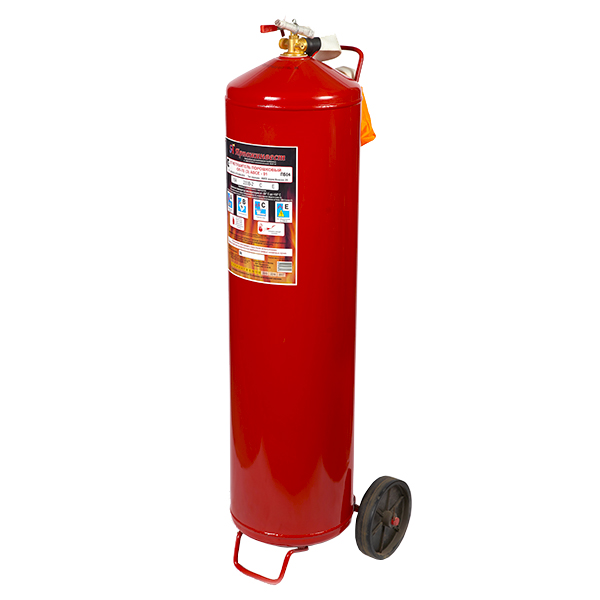 Огнетушитель порошковый ОП-100 представляет собой универсальный передвижной огнетушитель закачанного типа. Масса заряда ОТВ составляет 100 кг. Ранг по модельным очагам пожаров: 10А, 233В-2, С, Е (до 1000В). Защищает площадь до 1000 м². Имеет минимальную длину струи от 6 метров, а продолжительность подачи огнетушащего вещества не менее 30 секунд.